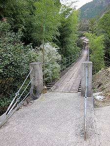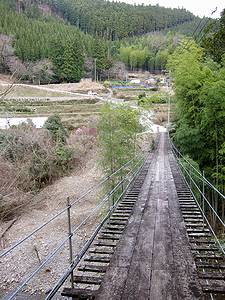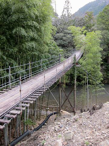 | <串の吊橋> 真ん中あたりに木製支柱がある生活橋 |